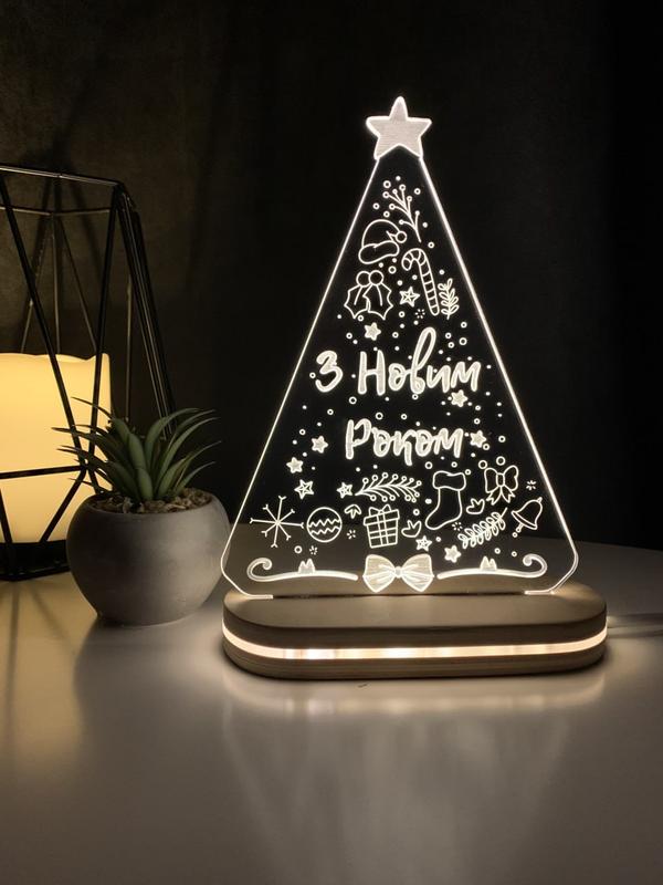 🎄Новорічний нічник "Ялинка З Новим Роком Merry" Подарує новорічний настрій кожному🎁 Розмір M (універсальний) - 17/10см Підставка з живленням від USB, 5V ( від розетки або павербанку) у комплекті є адаптер до розетки. ДОДАТКОВО: ❗️Можливий індивідуальний надпис на підставці❗️+50грн (просто даєте нам ваш варіант, а ми його наносимо на підставку планера) ▪️Підставка з сенсорною кнопкою + 60грн (можна включати та виключати при під'єднаному живленні) ▪️Підставка на акумуляторі 4000mAh + 330грн (зарядка у комплекті) 60 годин без додаткової зарядки ▪️Є 3 види підставок з підсвіткою: світле дерево, темне дерево, та суцільне дерево. Див. фото в пості. ✅Дана модель готується під замовлення, виготовлення та відправка на протязі 1-3 днів