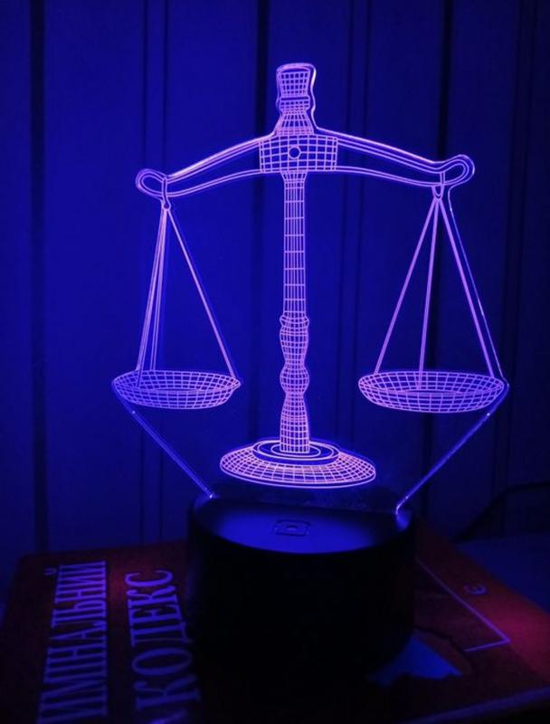 Світлодіодний 3D нічник Чудовий подарунок для юриста та студента Прикрасить інтер’єр будь - якого приміщення, від спальні і до офісу - 7 режимів кольору (як на фото) - Керування за допомогою сенсорної кнопки на самому пристрої - Живлення як від USB так і від батарейок (3 батарейки АА, в комплект не входять) - Матеріал нічника: корпус – пластик, платина – акрил (на пластині присутня захисна плівка) - Потужність: 3Вт Ціна: 699 грн