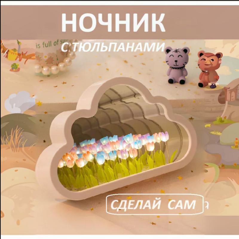 Нічник у хмарі "тюльпани" на батарейках роса, світильник настільний декоративний, модель 2...