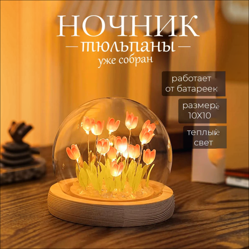 Ночник в колбе "тюльпаны" на батарейках роса собраный