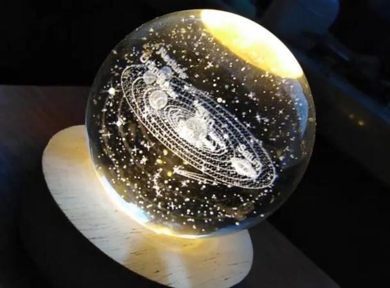 Для любителей космоса! "Кришталлическая Пуля" выполнена из экологических материалов - дерева и стекла. Внутри стеклянного шара нанесена лазерная гравировка в виде Солнечной системы. 3D светильник ночник имеет размеры: - Диаметр шара: 8 см; - Высота подставки: 2 см. Работает светильник от USB-шнура. Ночник стеклянный шар отлично подойдет для детской комнаты, спальни или кабинета. Он успешно выполняет свою основную функцию – создает мягкий рассеянный свет. Декоративный мини светильник "Солнечная система" - отличный подарок на Николая, День Рождения, Новый Рик, новоселье: близким людям,пишем, другу, коллеге по работе.