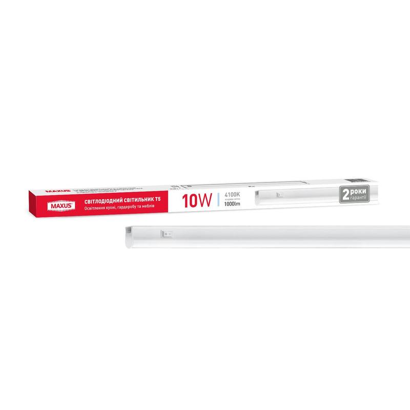 Світлодіодний лінійний світильник серії Maxus T5 призначений для організації функціонального освітлення в кухні, гардеробі та інших місцях, що потребують додаткового підсвічування. Широкий кут розсіювання світла та мініатюрні габарити корпусу світильника дозволяють створити рівномірне освітлення, не захаращуючи простір об'ємним освітлювальним обладнанням. Монтаж світильника здійснюється накладним способом за допомогою кріплень, що йдуть у комплекті. Наявність спеціального конектора дозволяє з'єднати декілька моделей у суцільну лінію з можливістю повороту окремих світильників.
