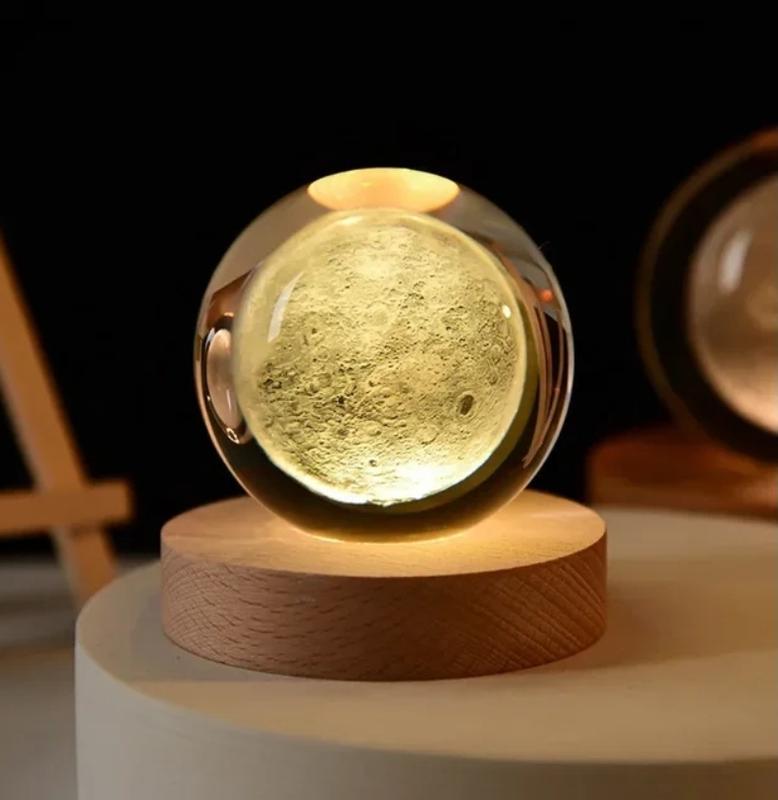 Светильник "Кришталья" выполнен из экологических материалов - дерева и стекла. Внутри стеклянного шара нанесена лазерная гравировка в виде Луны. 3D ночник имеет размеры: - Диаметр шара: 6 см; - Высота подставки: 2 см. Работает светильник от USB-шнура. Ночник стеклянный шар отлично подойдет для детской комнаты, спальни или кабинета. Декоративный мини светильник "Мисяц" - отличный подарок на День Рождения, Новый Год, новоселье: близким людям, избирательному другу, коллеге по работе.