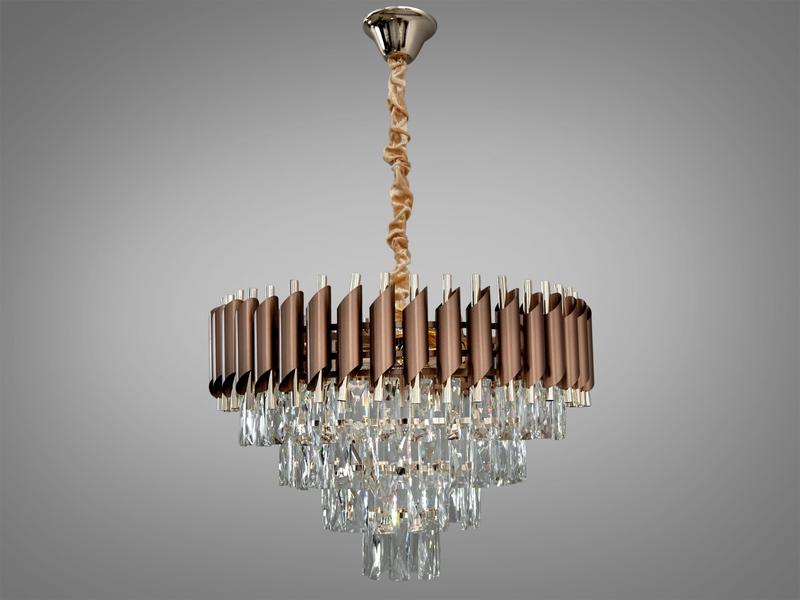 Сучасна кришталева люстра на 9 ламп Дуже хорошої якості, з якісними кришталиками які дуже гарно переливаються на світлі Ширина (Діаметр): 50 см Вага 8 кг.