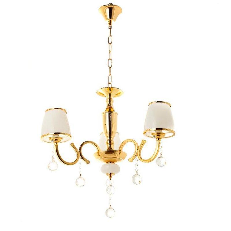 Люстра золотого кольору з білим абажуром і кристалами SLAVIA OU006/3/gold Опис до товару Ланцюг — 40 см Характеристики - Стиль Класика - Кількість плафонів — 3 - Колір плафонів — Білий - Джерело світла E14 - Висота, 45 см - Ширина, 50 см - Матеріал плафонів — Скло - Тип кріплення — Крюк - Матеріал арматури — Метал - Колір арматури — Золото Відсилання товару за передоплатою 200 грн