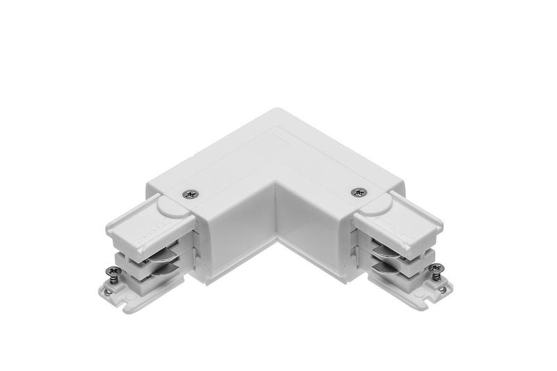 Конектор кутовий використовується для 3-фазних текових систем. Це аксесуар до 3 фазних трекових шинопроводів. Матеріал пластик.