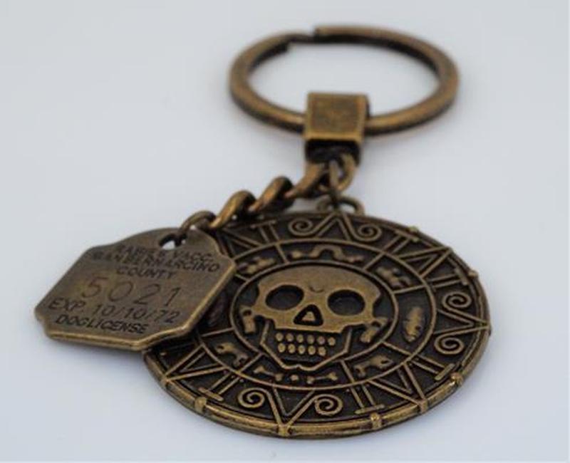 Брелок для ключів "Череп", колір — старовинна бронза. Метал, розміри: довжина загальна 8,50 см, діаметр 4,00 см, товщина 0,20 см, вага 20.66 грм.