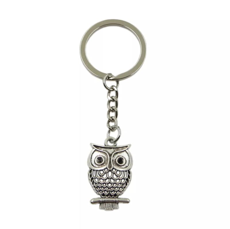 Брелок металевий для ключів, сумок, рюкзаків "сова / owl ja5" сріблястий
