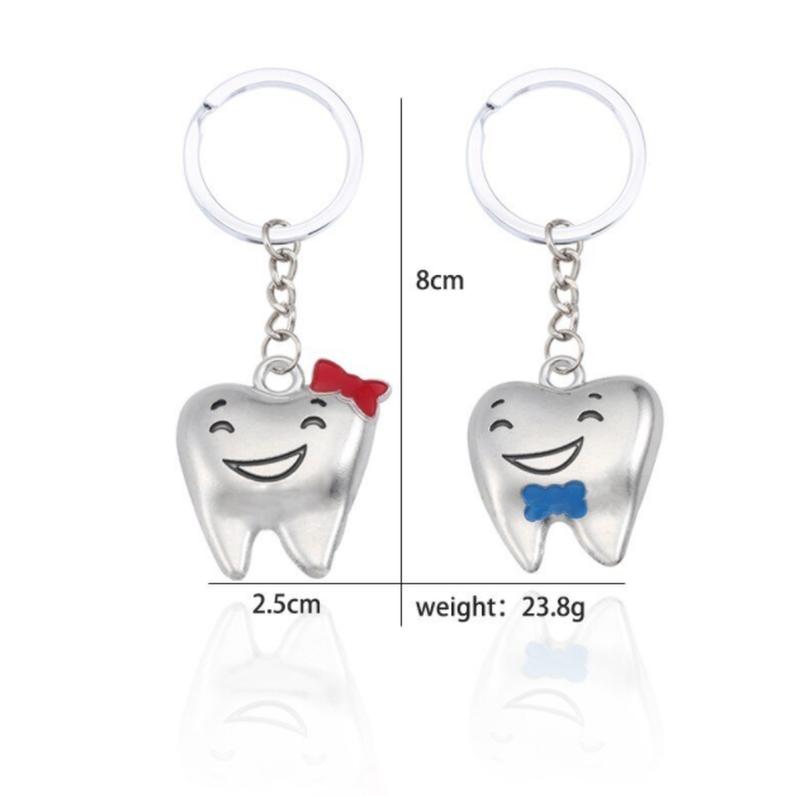 Брелок металевий (пара) для ключів, сумок, рюкзаків "зубик - хлопчик + дівчинка" rt1