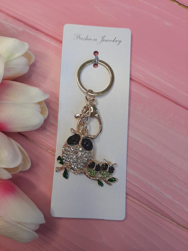 Металлический брелок со стразами "совушки на ветке"