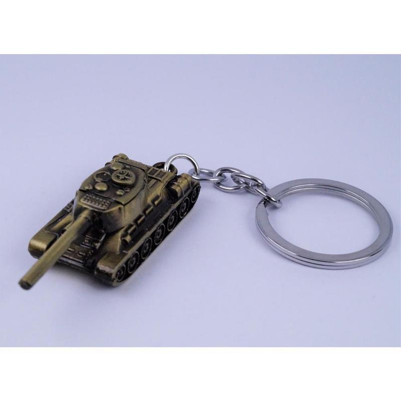 Брелок для ключів "Танк". Метал, розміри: загальна довжина 11,80 см, висота 1,70 см, ширина 2,00 см, вага 42.14 гм, колір — бронза.