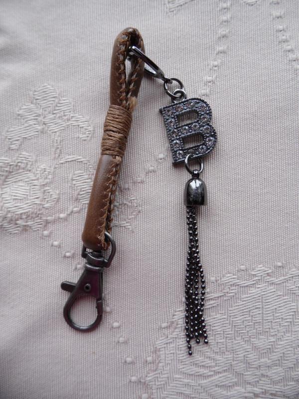 Брелок для ключів. Основа – ремінець з коричневої еко-шкіри. По краях карабін і прикраса у вигляді букви «В» зі стразами. Прикраса і карабін сріблястого кольору. ПОДАРУНОК при замовленні на сумму від 500 грн.