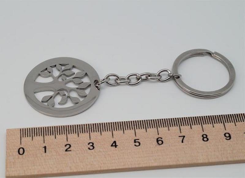 Брелок для ключів "Дерево життя". Метал, розміри: довжина загальна 10,30 см, діаметр 3,60 см, товщина 0,13 см, вага 13.00 гм, колір — срібний.