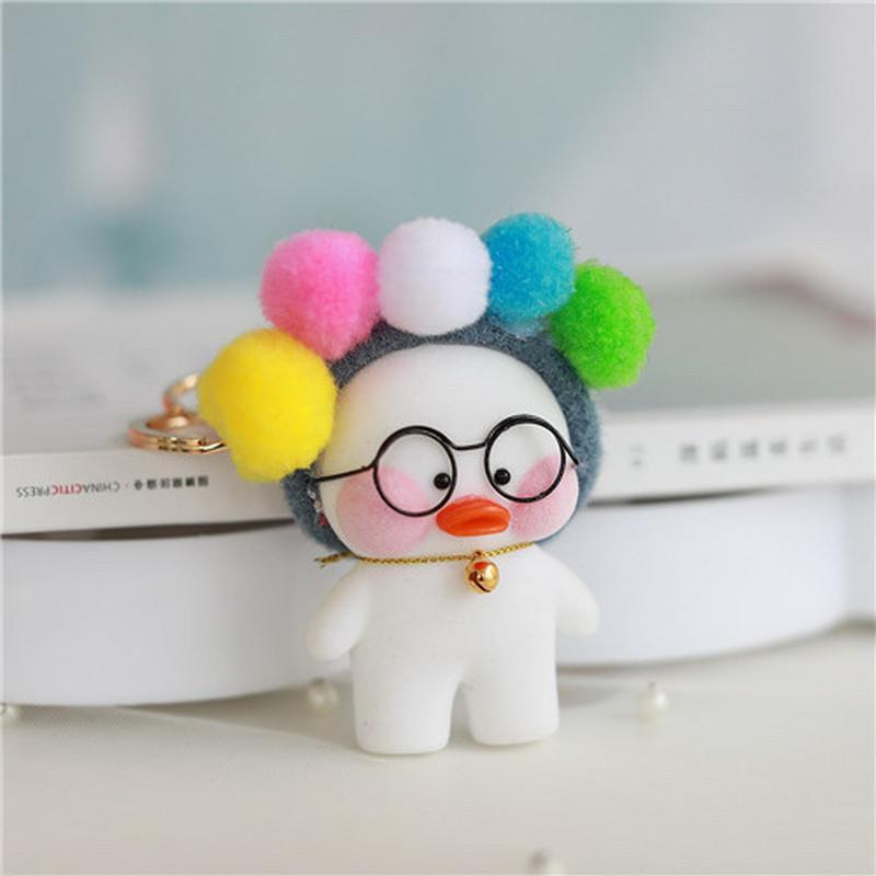 Дуже милі та модні брелки качки lalafan. Вуточки білого та жовтого кольору в обручі з різнокольоровими помпонами. Висота- 9 см, ширина - 5 см