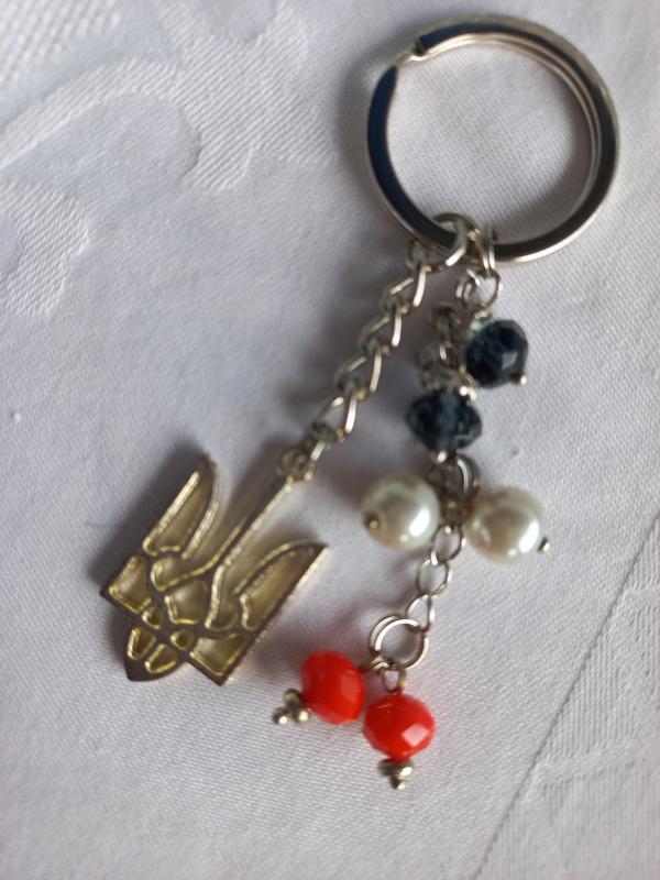 Брелок для ключів або сумки з металевим тризубом і кришталевими намистинами