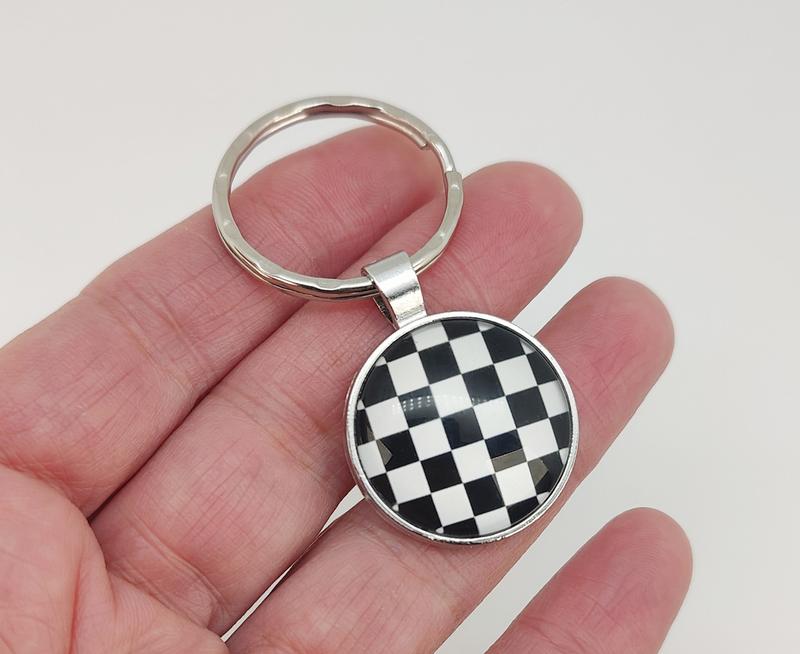 Брелок для ключей "Шахматы". Металл, стекло, размеры: длина общая 6,00 см., диаметр 2,80 см., вес 12.85 грм.