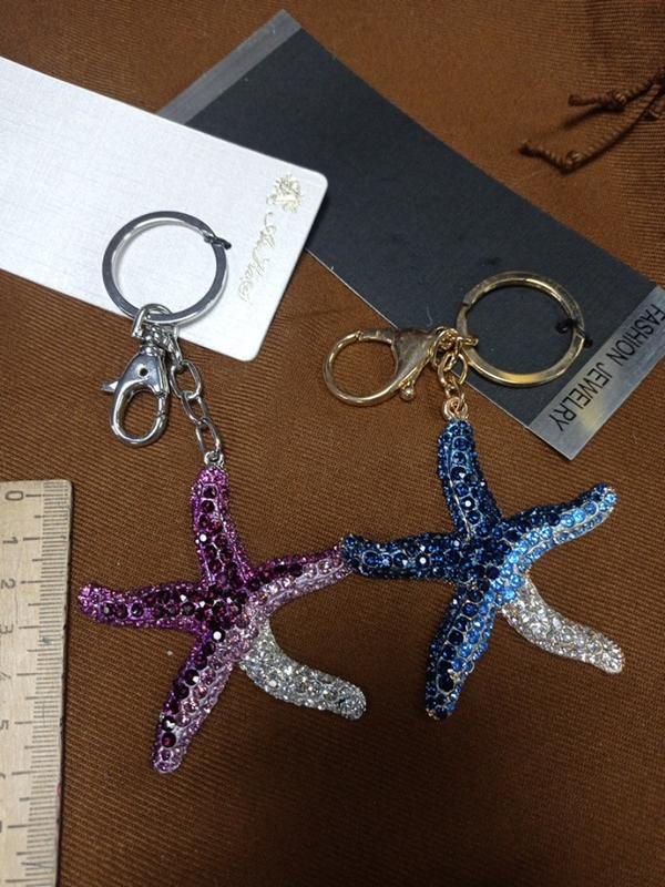 брелок морська зірка..жовтий..срібний метал.. різнокольорові камінці..красива
