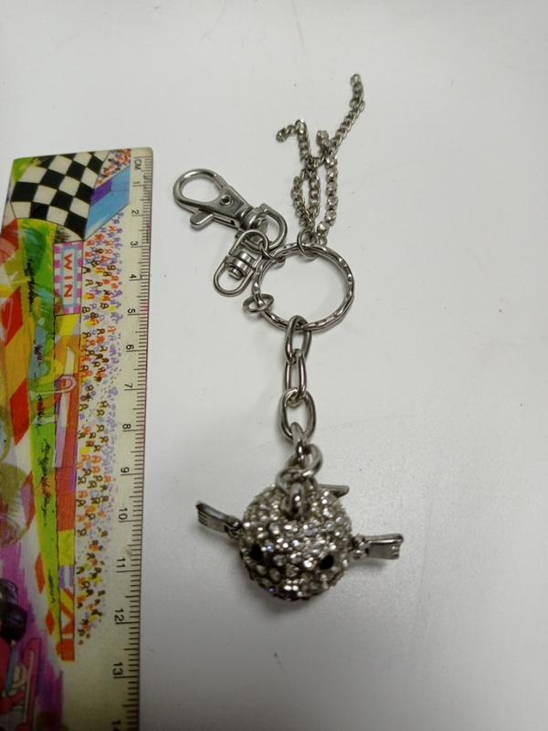 брелок рибка..плавці і хвіст рухомі..уся у камінні..на животі побажання удачі..можна рибалці на подарунок..срібляста..красиво