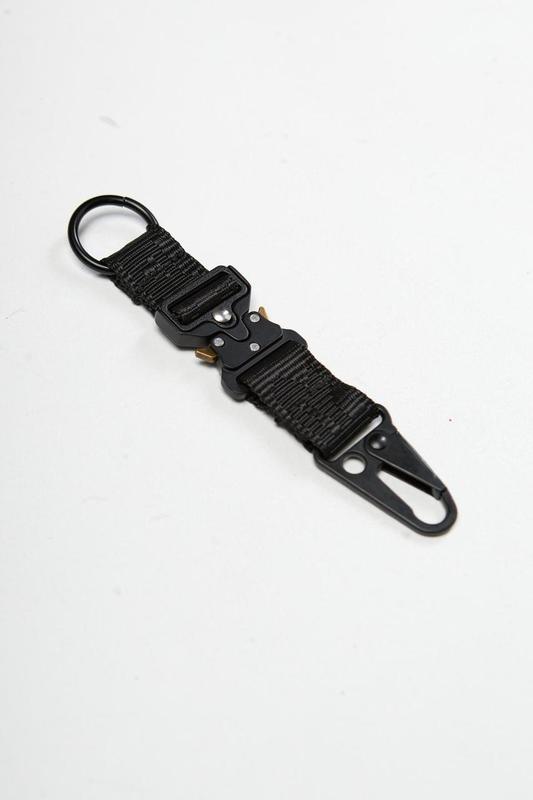 Опис матеріалів та фурнітури: зносостійкий нейлон, застібка фастекс металевий Розмір: ширина 2,5 см, довжина 16,5 см Ключові особливості моделі: універсальний брелок для ключів виготовлений з нейлону та нержавіючої сталі. Його можна швидко, легко і надійно прикріпити до петлі штанів, повзунка застібки-блискавки, стропи рюкзака, ременя сумки і багатьох інших місць.