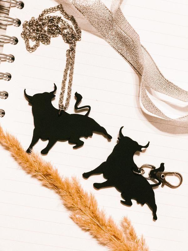 Комплект брелок и кулон на цепочке бык из натуральной кожи