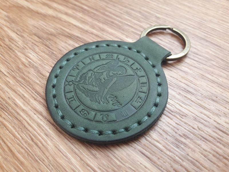 Зелений брелок з натуральної шкіри ручної роботи. Круглий брелок знак зодіаку "діва". Шкіра крейзі хорс завтовшки 1,4-1,6 мм. Два шари шкіри прошиті 1 мм вощеною ниткою. Колір шкіри, нитки та знак зодіаку на вибір. Розмір, включно з кільцем 7,5 см*5 см. Додаткові характеристики: Стать: Жіночий Стать: Чоловічий Матеріал: Натуральна шкіра