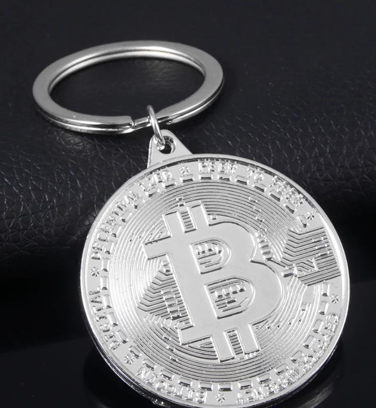 серебристый брелок на ключи металл. 4 см сама монетка. красивая очень.приятно держать в руках.просто брелок-монетка.неценная)=== ЕСТЬ МОНЕТКИ-золотистые и серебристые. СУВЕНИРНЫЕ монетки БИТКОИН