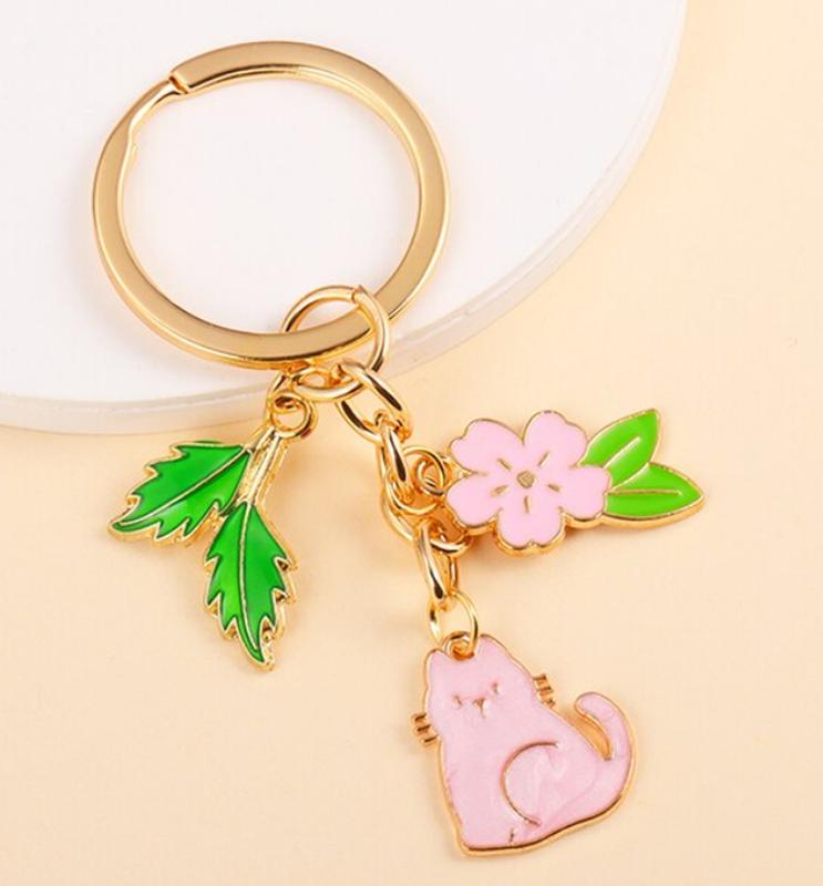 Брелок на ключі метал емаль кішка кіт ніжно рожевий