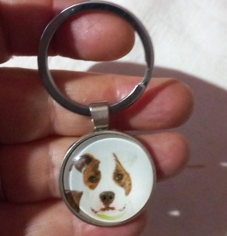 Брелок на ключи металл серебристый и стекло американский стаффордширский терьер стафф