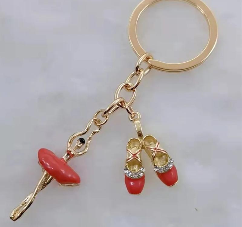 Брелок золотистий метал пуанти червоні тансовниця балерина