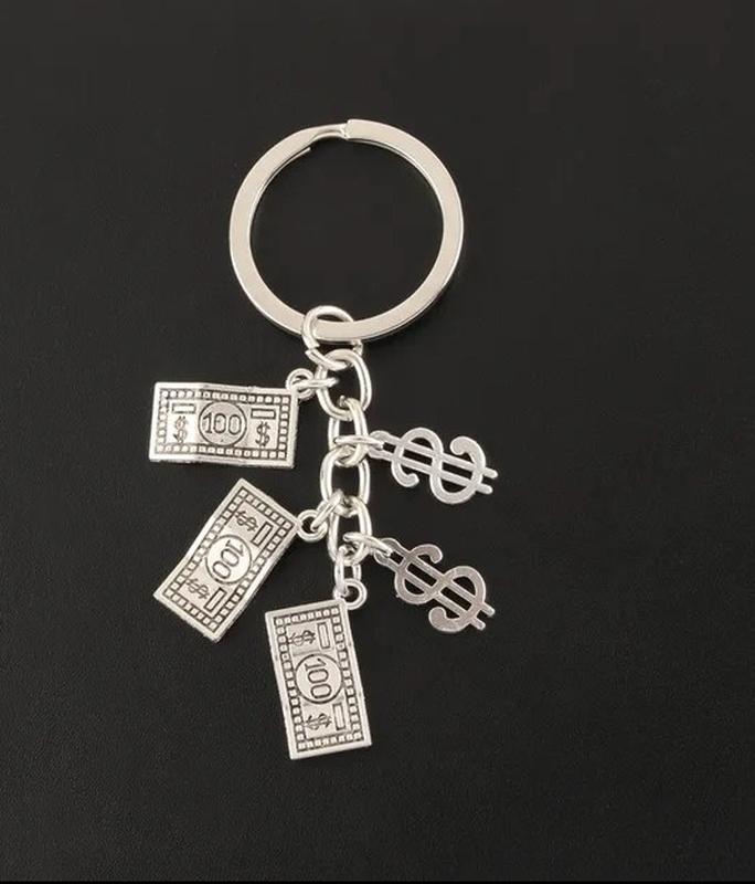Брелок на ключи металл деньги баксы зелень капуста сувенир купюры доллары серебристый мета...