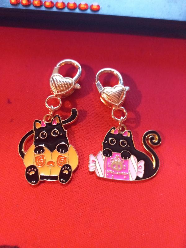 Брелок метал-емаль кішка кіт білий і чорний у чашках