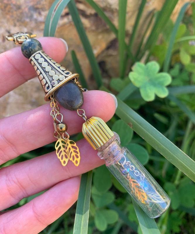 Підвіска, брелок - пляшечка ручної роботи з натуральним лабрадором та яшмою, чеським склом на фурнітурі із біжутерного сплаву золотистого кольору. Завдяки великій застібці - карабіну, підвіску можна причепити до ключів, сумки, або носити на ланцюжку, як кулон. Довжина підвіски із застібкою 11 см. Яшма щедро підживлює людину позитивною енергією, тому дуже корисно носити вироби з цього каменю. Яшма кабомба, вона ж крокодиляча, містить включення темно-зеленого та чорного кольору, що утворюють дивовижні візерунки. Мінерал допомагає тим, чиї серця нещодавно були розбиті, адже він заспокоює біль. На перший погляд непоказний, лабрадор має чарівні містичні переливи. Свою назву лабрадор отримав від назви півострова Лабрадор, де було виявлено у 1770 році. Камінь допомагає розвивати екстрасенсорні здібності та вважається талісманом цілителів та магів. Фахівці вважають, що лабрадор пробуджує в людині приховані таланти і допомагає їх розвитку, підштовхує до того, що раніше здавалося неможливим. Лабрадор також вважається амулетом творчих натур, він їм приносить натхнення, і водночас славу та визнання Відправка товару після повної оплати або післяплатою після передоплати 100 грн Додаткові характеристики: Стать: Жіночий