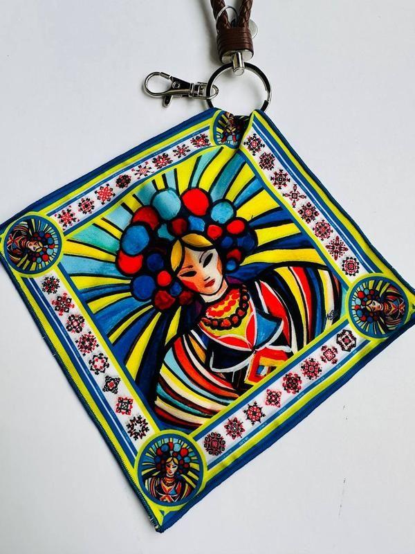Дизайнерский брерок с платком, яркий уникальный дизайн украинского бренда, который можно использовать как отдельный брелок. Рисунок не вымывается и не стирается, ткань и материалы высокого качества. Унисекс Можно ускользать как украшение для сумки, рюкзака, украшение на пояс и элемент одежды Дополнительные характеристики: Пол: Женский Пол: Мужской Материал : Натуральная кожа