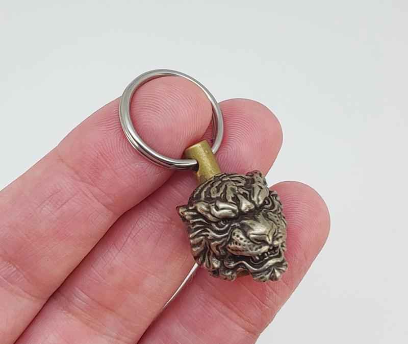 Брелок "Лев" (латунь/метал). Гарна деталізація, розміри: загальна довжина 4,30 см. (з кільцем), ширина 1,90 см., діаметр кільця 2,00 см., колір голови Лева — срібло, загальна вага 18.50 гм.