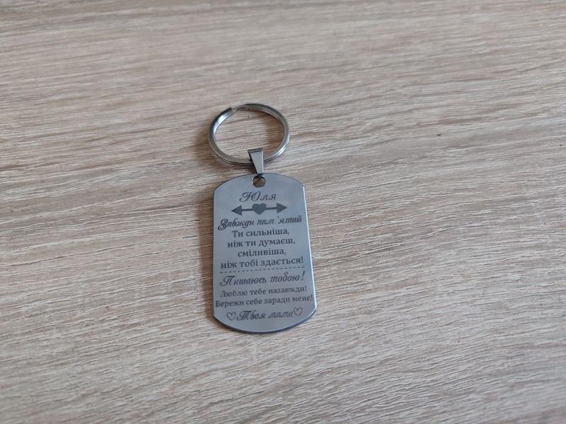 Подарок для дочки - брелок из нержавеющей стали с зеркальной полировкой и лазерной гравировкой. Брелок отличного качества, не меняет цвет со временем, гравировка с обеих сторон Характеристики Материал - металл Цвет - серебристый Гравировка с обеих сторон Вес 25 г