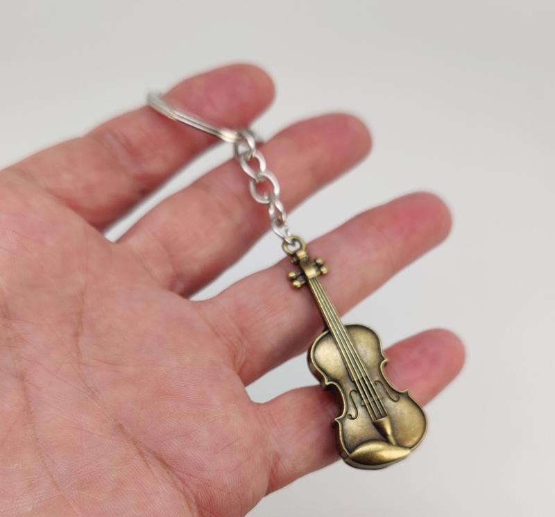 Брелок для ключів "Скрипка" (колір — бронзовий). Метал, розміри: довжина загальна 11,00 см, ширина 2,00 см, товщина 0,76 см, вага 11.80 гм.