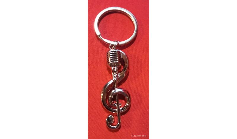 Брелок на ключі сріблястий метал подарунок музиканту скрипковий ключ із мікрофон