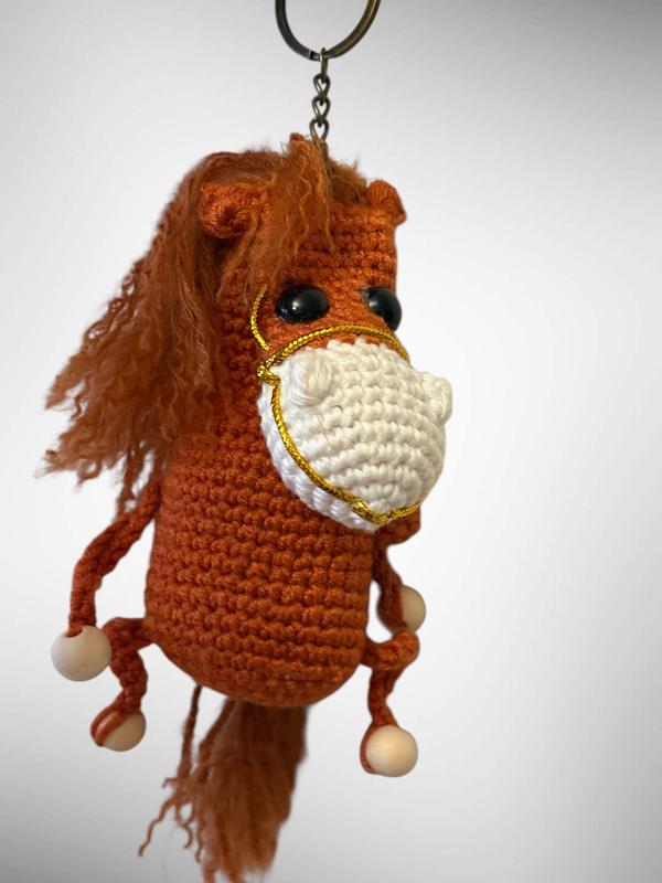 Оригінальний брелок-іграшка у вигляді коника, виготовлений вручну методом в’язання гачком. Ця мила фігурка стане чудовою прикрасою для ключів, сумки, рюкзака чи автомобіля, а також приємним сувеніром для друзів та рідних. Особливості: • Розмір: висота — приблизно 15 см • Матеріали: якісна бавовняна пряжа, акрилова пряжа, дерев’яні намистини, пластикові оченята, декоративний шнур • Ручна робота: кожен брелок створений з любов’ю та увагою до деталей • Легка вага: зручно носити з собою, не обтяжує • Унікальний дизайн: кожен екземпляр має свій характер Переваги: • Оригінальний подарунок для дітей і дорослих • Довговічний та зносостійкий • Екологічно чисті матеріали • Можна використовувати як брелок, декор, підвіску В наявності та на замовлення