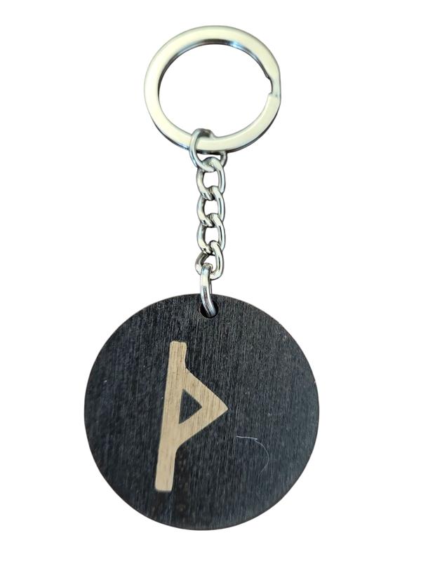 Брелок дерев'яний для ключів із руною "спешка шкідлива" турісаз 92 мм двосторонній