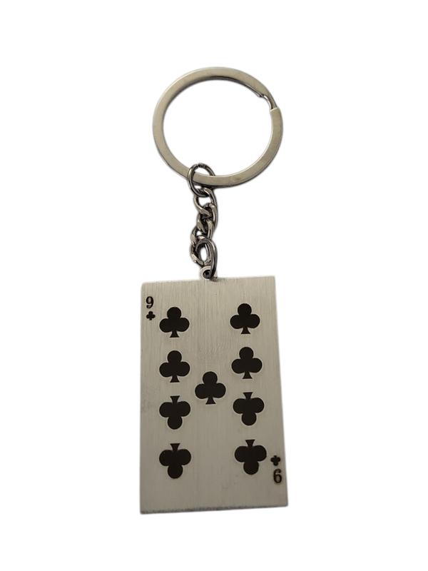 Брелок металевий для ключів із картою дев'ятка хрестова 107 мм двосторонній