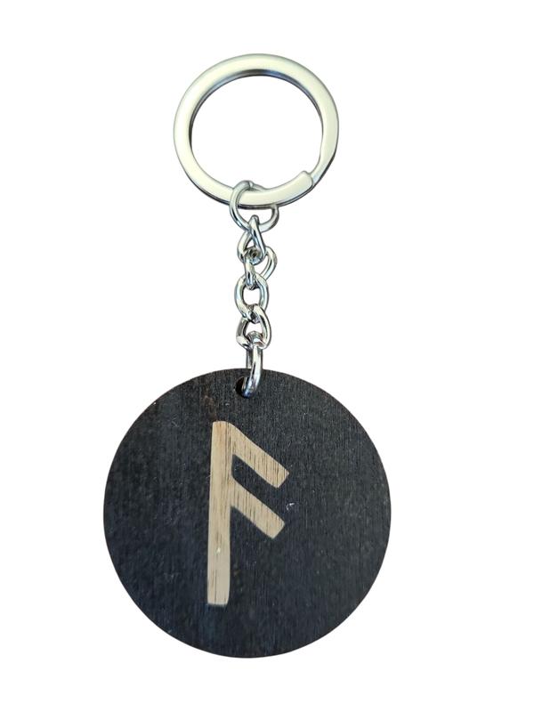 Брелок деревянный для ключей с руной ожидания удачи ансуз 92 мм двухсторонний
