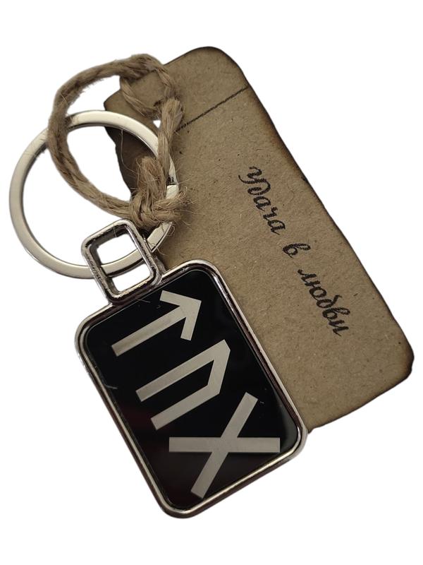 Брелок металлический для ключей с формулой рун Тейваз-Уруз-Гебо Удача в любви Длинна: 76мм двухсторонний