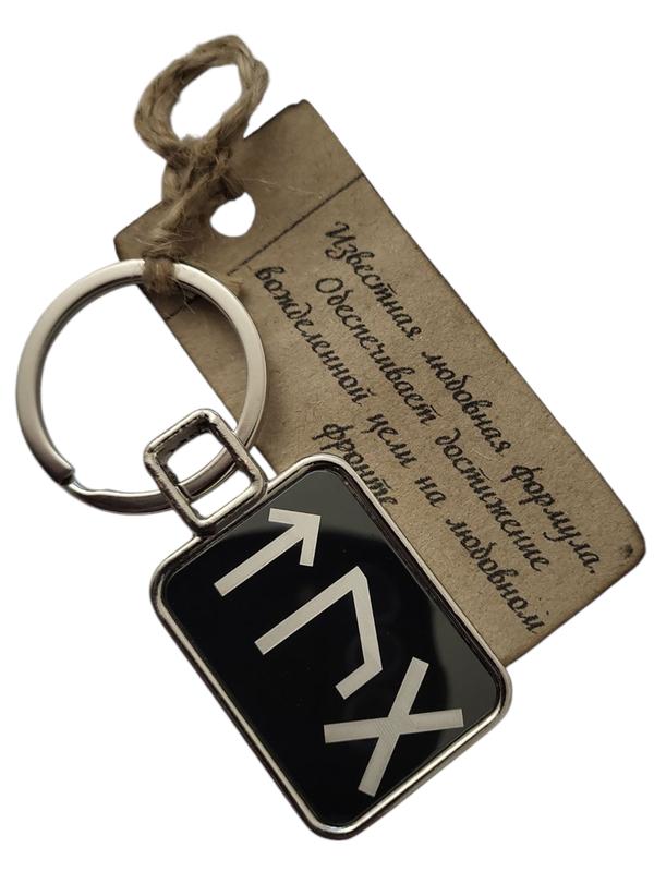 Брелок металевий для ключів із формулою рун Тейваз-Уруз-Гебо Відома любовна формула. Забезпечує досягнення бажаної мети на любовному фронті Довжина: 76мм двухсторонний