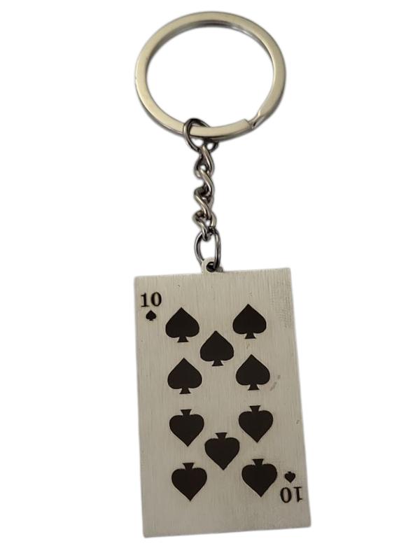 Брелок металевий для ключів із картою десятка пікова 107 мм двосторонній