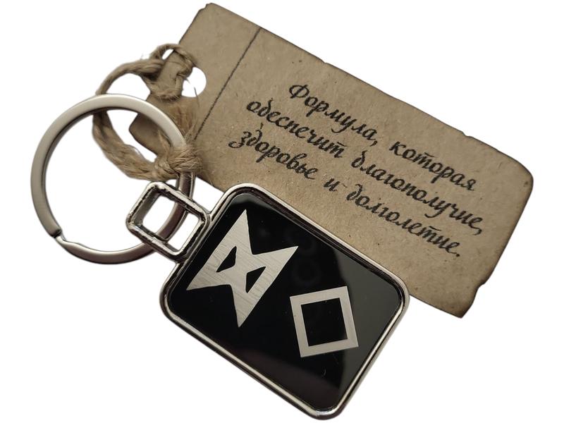 Брелок металевий для ключів із рунічною формулою, що приносить добробут 76 мм двосторонній