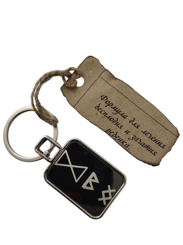 Брелок металевий для ключів із рунічною формулою лікувальна від безпліддя 76 мм двосторонн...