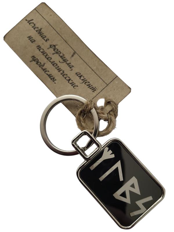 Брелок металевий для ключів із формулою рун Альгріз-Лагуз-Беркана-Соулу Лікувальна формула, акцент на психологічні проблеми Довжина: 76мм двухсторонний