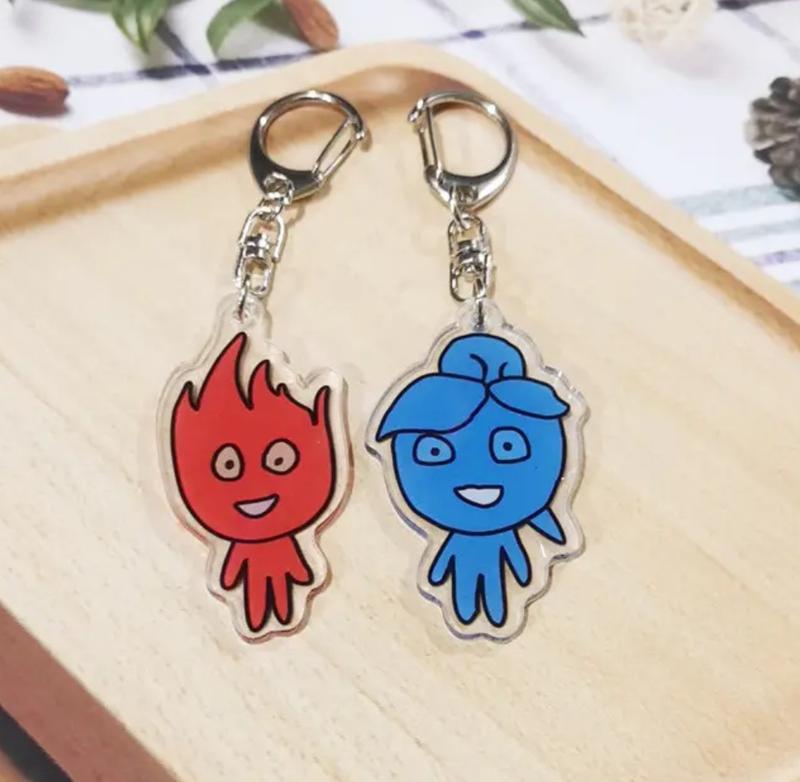Ці акрилові брелки — чудовий аксесуар для шанувальників гри "Вогонь та Вода". У набір входять два брелки: червоний персонаж, що символізує Вогонь, і синій персонаж, що символізує Воду. Вони виготовлені з міцного акрилу та мають металеві карабіни, які дозволяють легко прикріпити їх до ключів, рюкзака чи сумки. Це яскравий та оригінальний подарунок для будь-якого фаната.