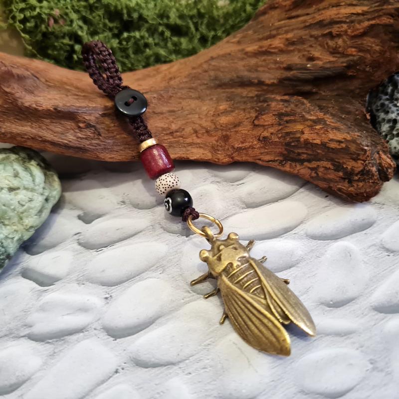 🔺🦗✨ захисний брелок-амулет "цикада" латунь, текстиль