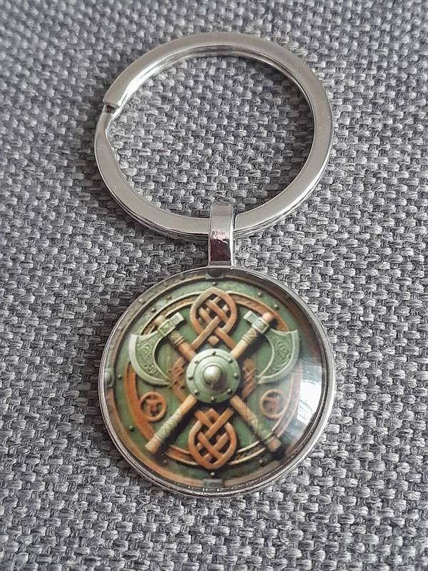 Цей брелок стане чудовим доповненням для тих, хто захоплюється скандинавською міфологією та культурою вікінгів. На його центральному медальйоні зображений бойовий щит вікінгів з виразним 2D ефектом, прикрашений двома перехрещеними сокирами та кельтським візерунком, що символізує силу, захист і доблесть. Особливості: Дизайн: Брелок має стильне та брутальне зображення, що одразу привертає увагу. Завдяки 2D ефекту, всі деталі візерунка та сокир виглядають дуже чітко. Виготовлений з міцного металевого сплаву, що робить його довговічним і стійким до зношування. Практичність: Зручне кільце дозволяє легко прикріпити брелок до ключів, рюкзака або сумки. Двосторонній: Зворотна сторона має спіральний візерунок, що додає виробу додаткової оригінальності. Характеристики: Назва: Щит вікінгів Зображення: Щит, дві бойові сокири та кельтський вузол Розміри: Діаметр медальйона: 3 см Діаметр кільця: 2.77 см Додатково: 2D ефект на зображенні Цей брелок ідеально підійде як подарунок для фанатів історичних фільмів, серіалів та скандинавської тематики.